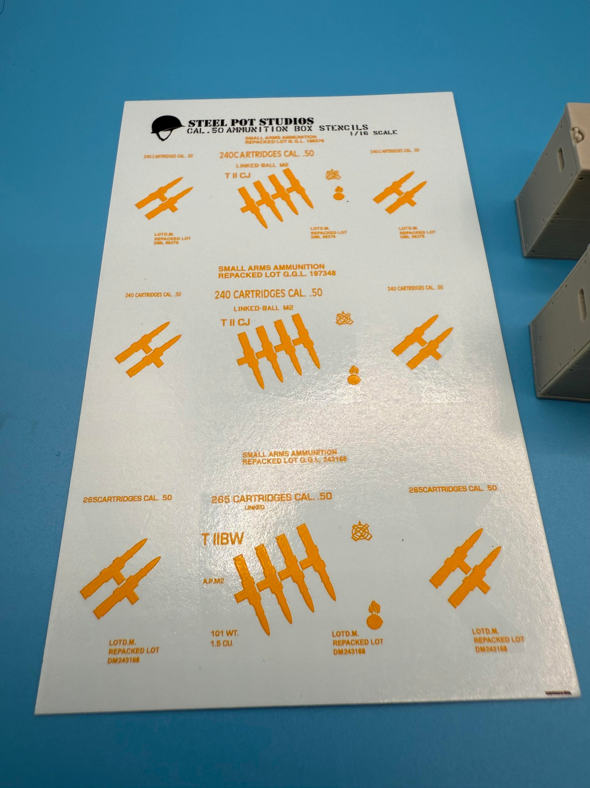 Set also includes a mixed selection of Microscale waterslide stencil decals, representing .50 cal. and .30 cal. options