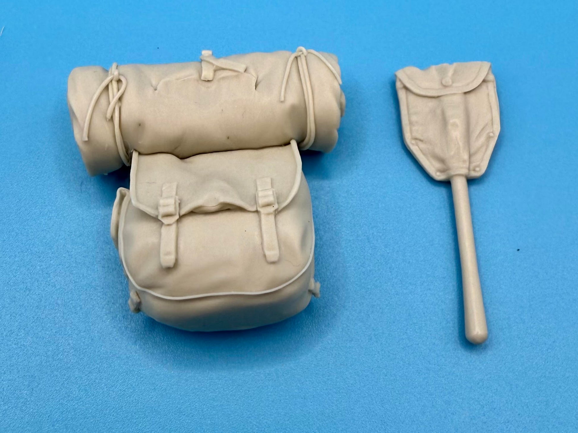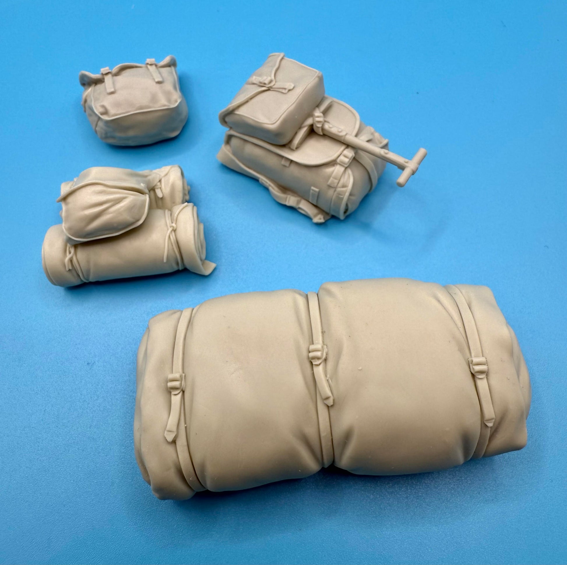 Representing U.S. WW2 stowage for military vehicles, preferably to be used with the 1/16 M3 Halftrack. Some parts are produced separately for easy-painting purposes but will adapt to other pieces. See photos.