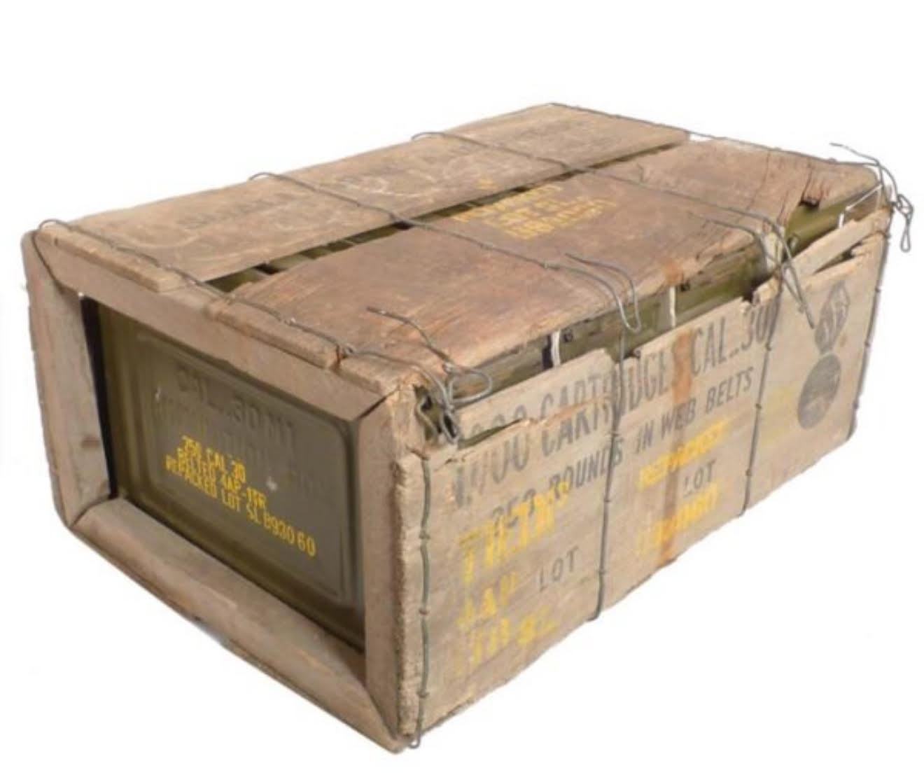Includes 4 3D printed U.S. WW2 metal .30 cal. ammo cans and 1 .30 cal. wooden crate.