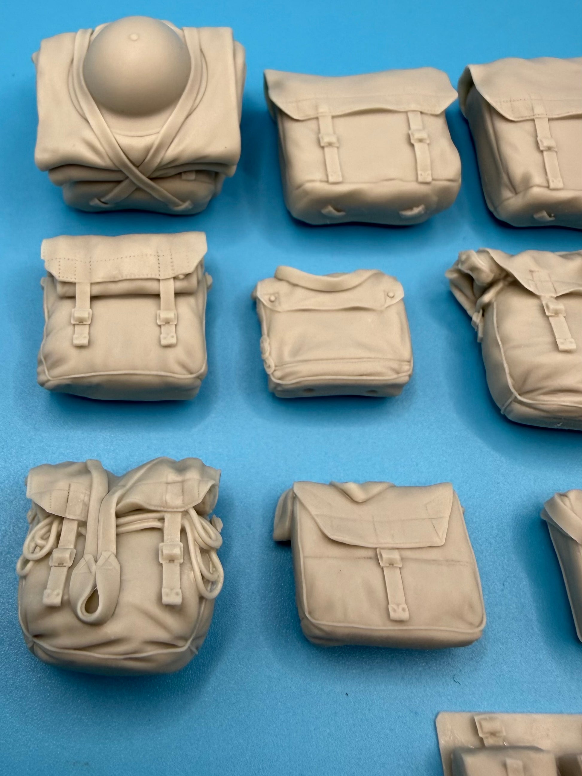 British WW2 stowage set. Set includes an assortment of haversacks, M37 rucksacks, medical bag, 2 ammo pouches, officer and gasmask bag. Includes 13 Pcs.